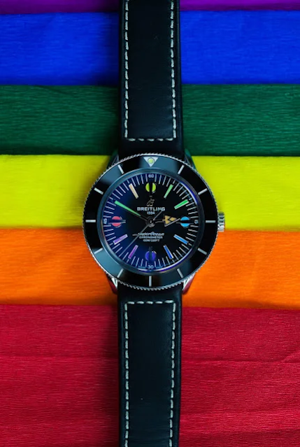 L'un des garde-temps les plus ludiques jamais produits par Breitling (à supposer que les monstruosités ridicules du boîtier Breitlite ne soient pas de la pure satire), le magnifique cadran de la réplique Heritage '57 LE est défini par un arc-en-ciel de couleurs vives à travers les index. Ce n'est pas subtil non plus ; sur le fond noir des index colorés, il ressort plus qu'une exposition Warhol, aidé en cela par les cercles de lumière barrés à 12, 3, 6 et 9 heures.